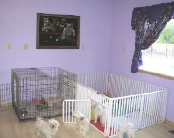 in mom's puppy pen for really young puppies. Since there are no puppies here at the moment, mom lets all of us play in it. |